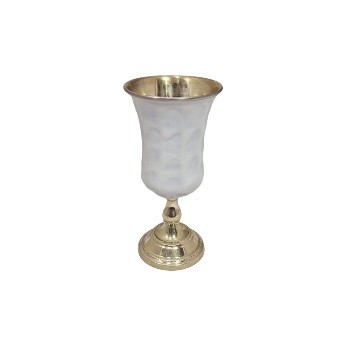 Metalen Kiddush beker in goud/wit met een inhoud van 120 ml.